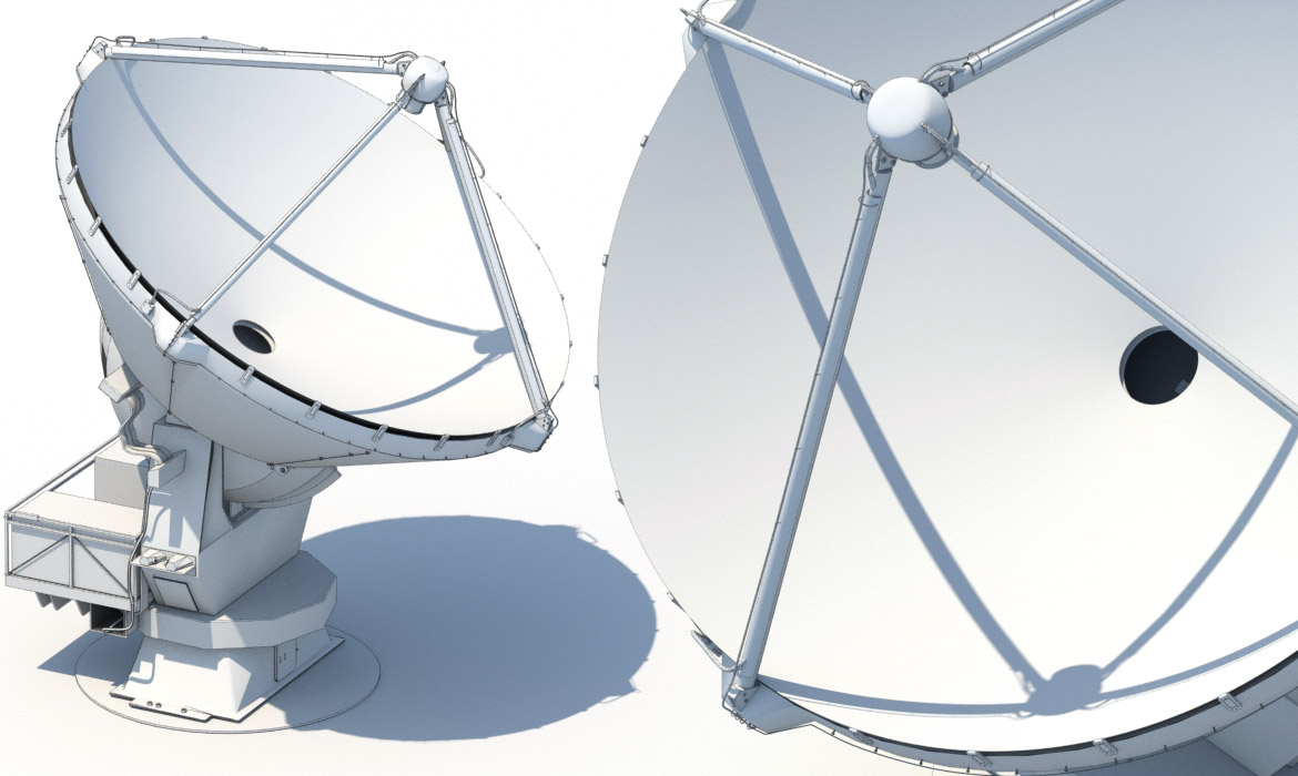 In the above image, I built an array of dishes that that I posed in various ways. I over did the modeling (as usual) and included the nuts and bolts on the dish arrays. I didnt know how close the camera would come to the dishes, but I wanted it to be able to come within a few meters with full detail. As always, I keep my maps above 4K to help ensure this.