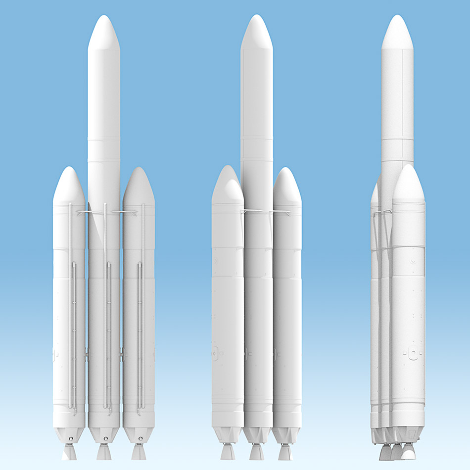 It is similar to the Medium+ (5,2), except that it uses two additional CBCs instead of using GEMs. These are strap-on boosters which are separated earlier in the flight than the center CBC. The Delta IV Heavy also features a stretched 5-meter composite payload fairing. An aluminum trisector fairing derived from the Titan IV fairing is also available. The first launch in 2004 was a test launch only. Its first payload was the DSP-23 satellite.