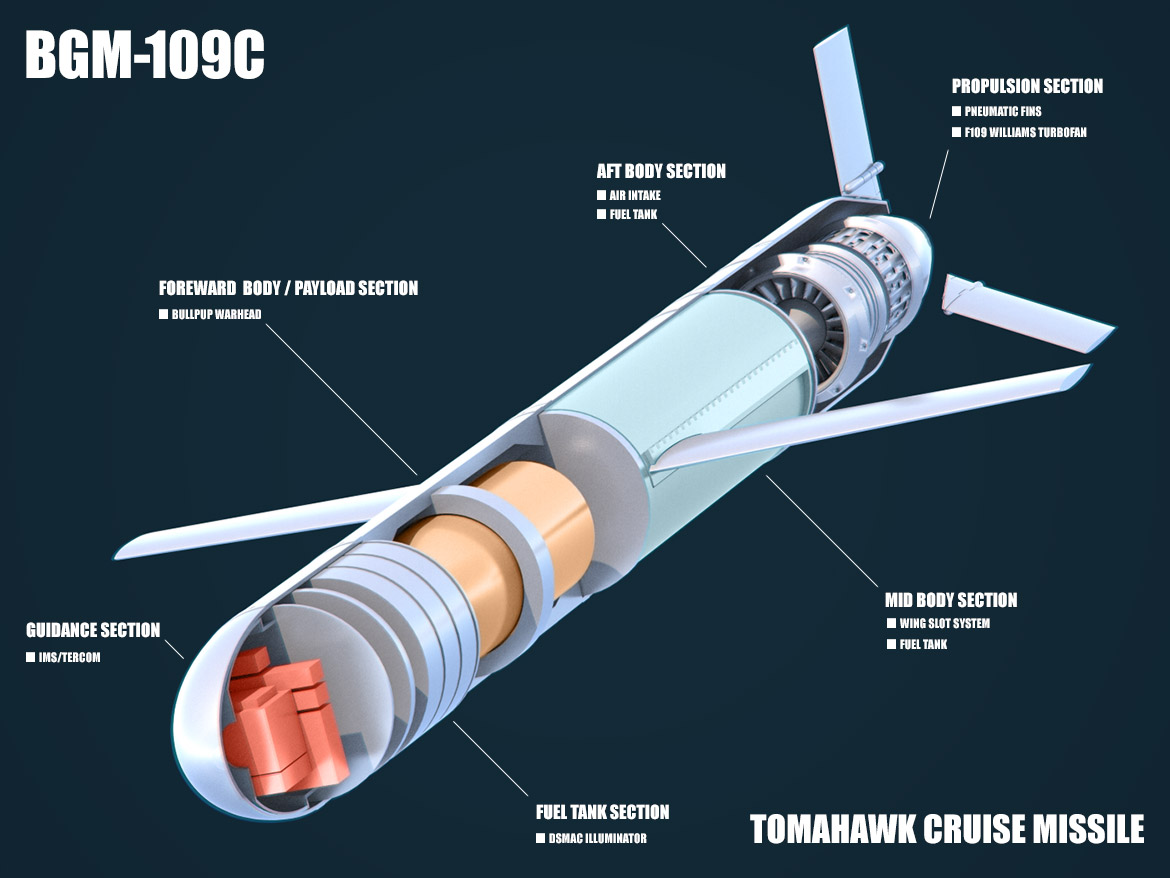 The Tomahawk missile family consists of a number of subsonic, jet engine-powered missiles designed to attack a variety of surface targets. Although a number of launch platforms have been deployed or envisaged, only sea (both surface ship and submarine) launched variants are currently in service. Tomahawk has a modular design, allowing a wide variety of warhead, guidance, and range capabilities.